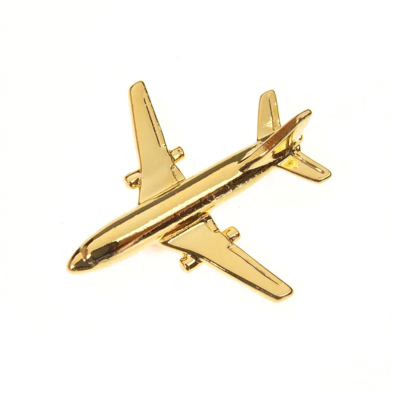 Boeing 737 pin with 22-karat gold plating. A well-crafted miniature with fine detailing and rear clasp. Supplied in a presentation box. A great addition for aviation enthusiasts and collectors.