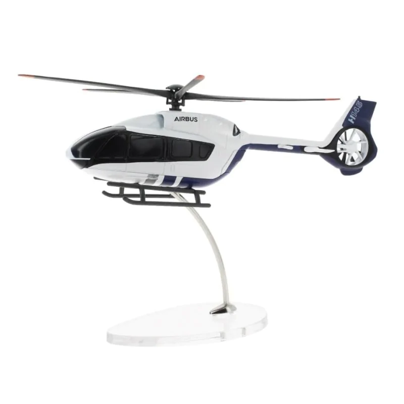 This quality metal diecast Airbus H145 model in 1:72 scale is pad-printed/spray painted and finished with glossy varnish coating. Highly detailed it features a solid/heavyweight metal fuselage. Packed in a full colour printed Airbus box. No assembly required. Size: 16 cm